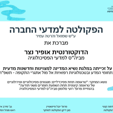 Congratulations to PhD student Yoni Stern for winning the University of Haifa’s “Dafna & Aharon ...