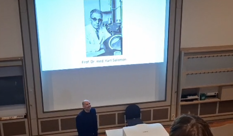 Dr. Salomon opened his presentation with a personal reflection on his family’s history at the Charité. In 1933, his grandfather, Professor Dr. Karl Salomon, was expelled from the institution because he was Jewish. He subsequently fled Germany and rebuilt his medical career in Israel. Nearly a century later, Dr. Salomon’s return to the Charité to conduct and present research on trauma and healing symbolized a meaningful professional and personal circle.